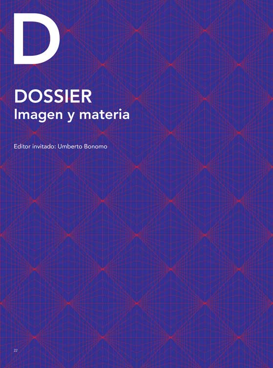 El Dossier propone una reflexión sobre la imagen y la materia en la arquitectura. Por un lado, algunos autores analizan la imagen como un instrumento que alimenta el proceso proyectual. Luis Etchegorry aborda los temas a partir de la obra de UNStudio. El arquitecto peruano Jean Pierre Crousse toca la problemática a partir de su propia experiencia profesional en el desierto peruano. Por su parte, Claudio Magrini reflexiona a través del análisis de determinadas obras de maestros como Peter Zumthor, conjugando estas reflexiones con el proceso proyectual de sus propios trabajos. Hugo Mondragón repasa antecedentes históricos que marcan la relación entre arquitectura e imagen para establecer el origen de la desconfianza hacia esta última. Alberto Ferlenga, por su parte, nos invita a promover una arquitectura que proponga valores y no solo imágenes. Y el entrevistado de esta edición, el arquitecto brasilero Angelo Bucci, nos ilumina sobre el rol de una imagen en una publicación: enriquecer el proceso propositivo con nuevas posibilidades de configuración y significación.