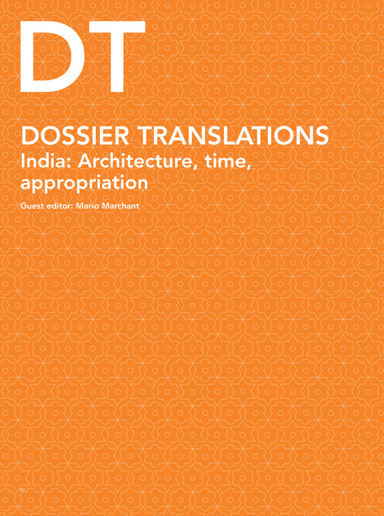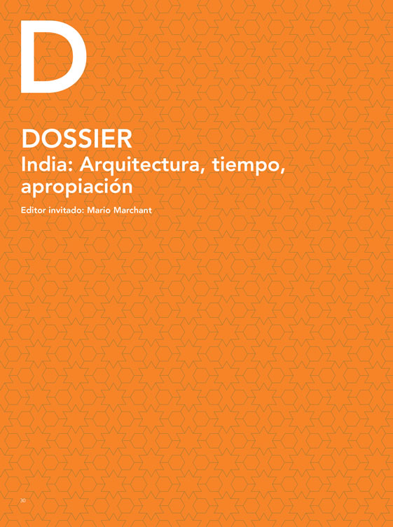 “India: arquitectura, tiempo, apropiación” es el tema del dossier de esta edición concebida por Mario Marchant, quien abre la publicación con una entrevista al arquitecto indio Rahul Mehrotra. Felipe Vera en su artículo profundiza las propuestas de Mehrotra en torno a la ciudad cinética y los tejidos efímeros de las urbes indias. Por su parte, inspirados por las ideas de F. C. Turner y los proyectos realizados por B. V. Doshi y Charles Correa, Matias Echanove y Rahul Srivastava analizan los intentos por mejorar barrios marginales y desarrollar estrategias para la construcción progresiva en India. En esa misma línea, el trabajo de Rodrigo Tisi analiza diversas “tomas” desde el lente de los estudios de performance, poniendo el acento en la arquitectura como una herramienta de comunicación política. Un punto crítico lo marca Vineet Diwadkar, quien examina el impacto del Proyecto de Desarrollo de la Ribera del Sabarmati (SRFDP) sobre la historia cultural del lecho de dicho río, un lugar público que durante 600 años ha albergado al Bazar Gujari, pronto a desaparecer por efectos de la “gobernanza empresarial urbana”. Finalmente, Horacio Torrent presenta un singular artículo sobre la forma en que dos publicaciones chilenas de los años cuarenta y cincuenta informaron sobre el diseño y la construcción de Chandigarh. Cierra esta edición “Snap Shot” el reportaje gráfico de Albert Tidy realizado con su teléfono celular, un registro desprejuiciado de un breve e intenso viaje por Bombay, Chandigarh y Jaipur.